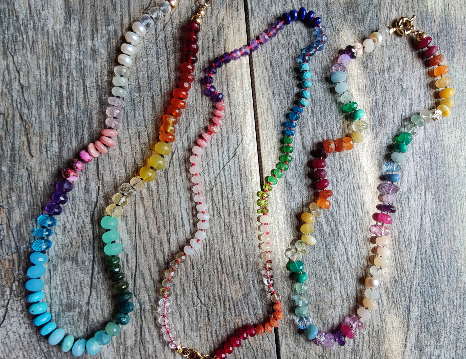 Here's a preview of some of my favorite colorways and designs. I also love custom projects, and clients come to me with an idea as specific as the type of gemstone, color, size, and layout they want; or as general as a photo of their favorite painting as color inspiration (or even just the request "I like shades of blue"!) and then we work together to create the piece of their dreams. Reach out anytime if you're curious about custom options, I'm always happy to chat about jewelry!